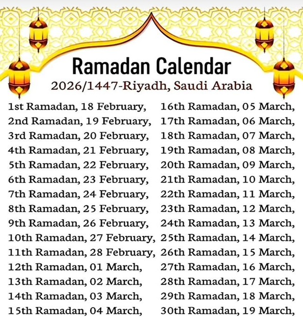 Ramadan 1447 AH Calendar (Tentative – Confirmed by Moon Sighting)